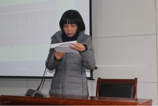 11月29日下午后勤保障部召开全体职工大会暨2017年“两代会”代表选举大会。大会主会场设在科学会堂201会议室,各中心分别设立分会场。本次大会由熊妮丽副部长主持,由工会主席李建华副部长做了工会工作总结,由后勤保障部办公室龚启学主任对工会福利费使用情况做了汇报,由黄尚德副部长宣布选举规则。随后在公平、公开、公正的基础上选举产生了后勤保障部新一届工会委员和参加2017年华中师范大学“两代会”代表人选。