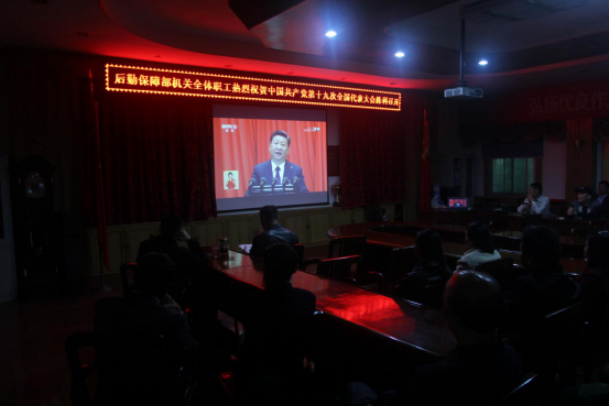 2017年10月18日上午9时中国共产党第十九次全国代表大会在北京人民大会堂开幕。后勤保障部组织干部职工集中观看开幕式,迎接和庆祝十九大胜利召开,积极营造学习宣传贯彻十九大精神良好氛围。