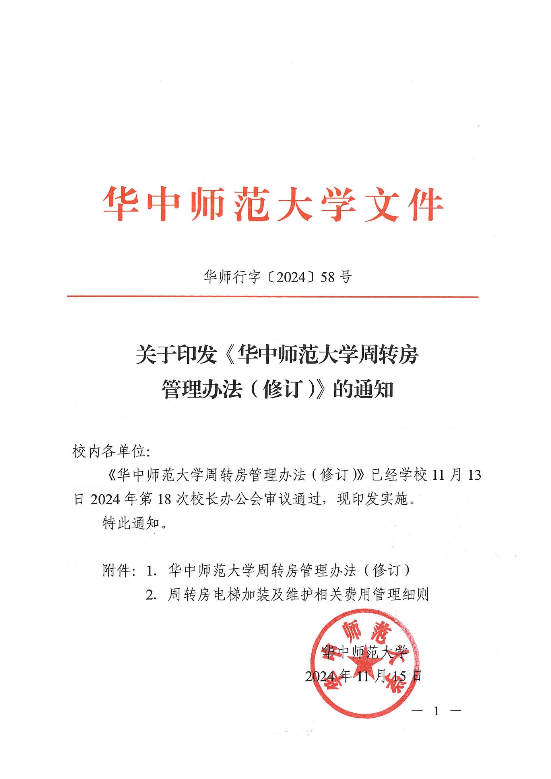 第一条 为适应学校事业高质量发展需要,进一步规范周转房管理,促进房产资源合理有效利用,根据《省房改办直管高校周转房管理试行办法》(鄂房改办〔2009〕19号)、《关于落实公有住房租金调整政策的通知》(鄂房改办〔2012〕21号)、财政部《关于进一步规范和加强中央党政机关所属事业单位房屋资产管理的通知》(财资〔2024〕92号)及国有资产管理有关规定,结合我校实际,特制定本办法。