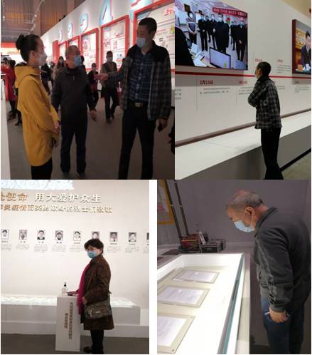 参观期间,大家认真观看每一幅展览品,面对历历场景,党员们都深感震撼和感动。党员陈月萍谈到自己和家人在疫情时的经历,眼中饱含泪水的说:“那段时间社区工作人员给予了我家很多的帮助,国家减免了我儿子患病的治疗费,作为中国人我感到强大的祖国给我带来的安全和自豪。