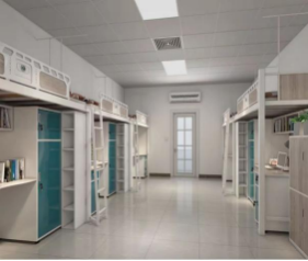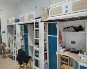 新置的钢制家具无异味,搭配完善的热水、空调等配套设 施以及细致的保洁工作,处处彰显着对学生的关爱。