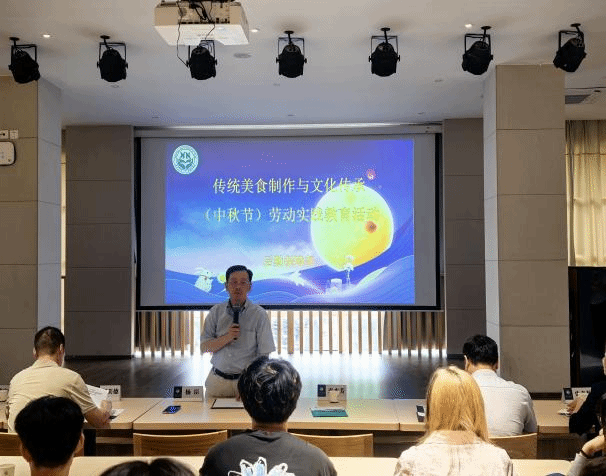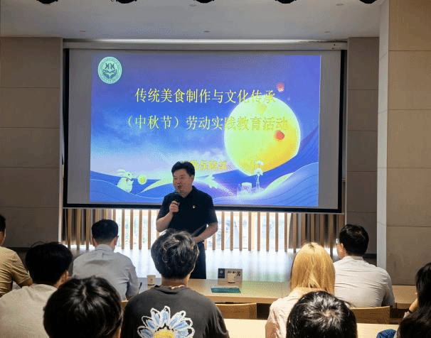 在中秋、国庆双节同庆之际,9月30日下午,后勤保障部在桂香园食堂组织开展“传统美食制作与文化传承”劳动实践教育活动。后勤保障部部长袁本芳,副部长郭美德、辜庆、史冬梅与40余名学生共同参与了此次活动。活动由党委书记杨臣主持。